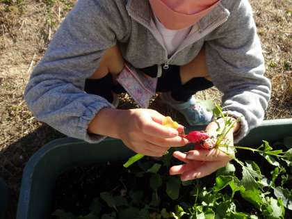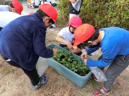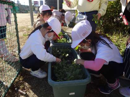 10月から育てていたはつか大根を収穫しました。毎日、日直の子が責任をもって水やりをして育てました。サラダにしたり、そのままで食べたりして、おいしく食べることができましたね。