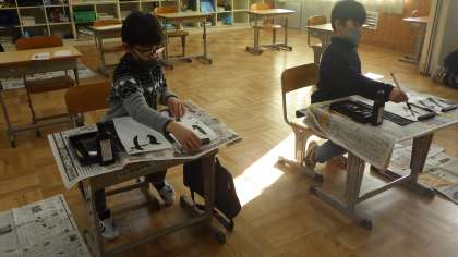 冬休みが終わり、書き初め大会を行いました。練習の成果を生かし、長い時間集中して取り組むことができました。