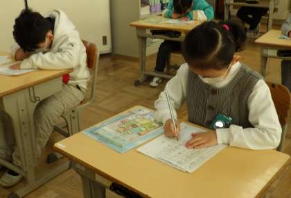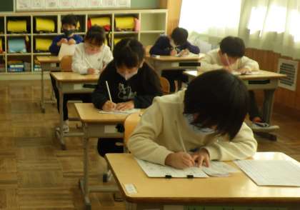 1月10日に書き初め大会がありました。1年生にとっては初めての書き初め大会。緊張しながらも、真剣に取り組む姿が見られました。お手本をよく見て、止め、はね、はらいに気を付けて書くことができました。