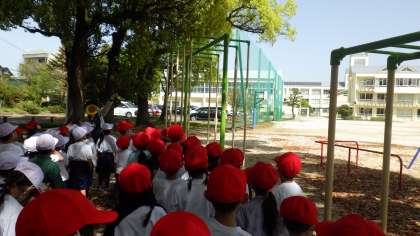 4月12日(水)に、1年生全員で遊具や広場、ビオトープの使い方を確認しました。
