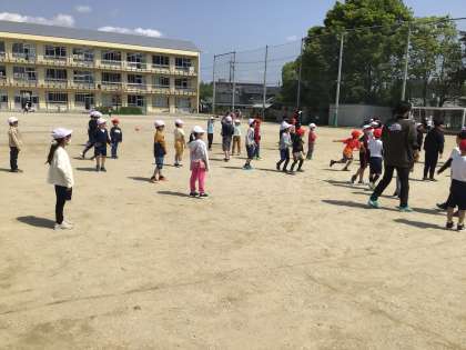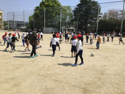 ドッジボール、おにごっこ、サッカーなどいろいろな遊びをしています。