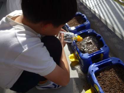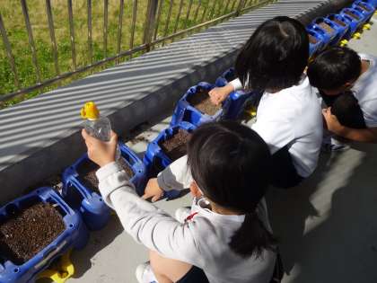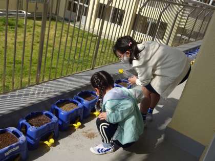 ホウセンカの種まきをしました。とても小さな種を両手で慎重に蒔いていました。毎日の水やりを欠かさず行い、きれいな花が見られることを楽しみにしています。