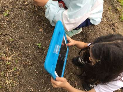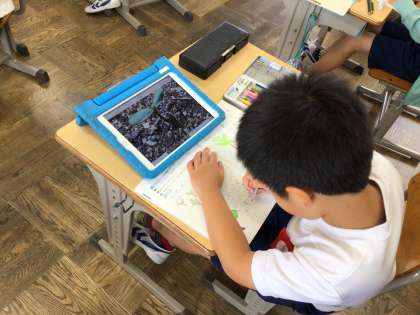 ひまわりの観察をしました。タブレットで写真を撮ることでより細かく観察できました。