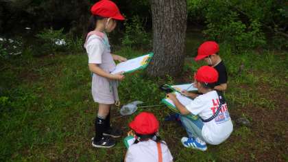 1年生全員で、児ノ口公園へ校外学習に行きました。自然いっぱいの公園で、たくさんの生き物や植物を見つけることができました。学校に帰ってからは、クイズ形式で見つけたものを発表し、大盛り上がりでした。