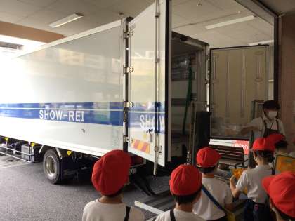 社会科の学習で、スーパーマーケットの見学をさせていただきました。バックヤードの様子や、大きな冷蔵庫の中など、普段は見られないところも見ることができました。働くことへの関心が高まりました。