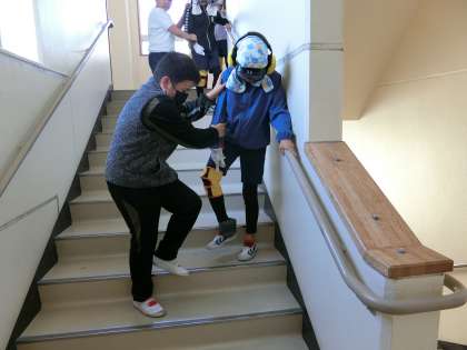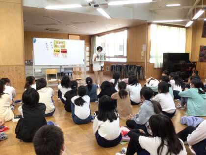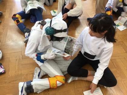 総合的な学習の時間では、「やさしさいっぱい届け隊」として福祉について学習を進めています。今回は豊田市社会福祉協議会から、相談員としても挙母小学校に来てくださっている服部さんを講師にお招きし、高齢者について学習しました。実際に装具を付けて、80歳の身体を体験してみると歩くのが大変だったり、白内障になると薄い色や明るいところが見にくくなったりと、普段の自分とは違う、体験してみないとわからないことをたくさん学ぶことができました。今回の学びを、今後のまとめ活動にも生かしていきたいです。