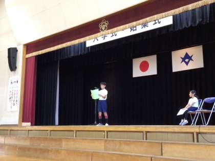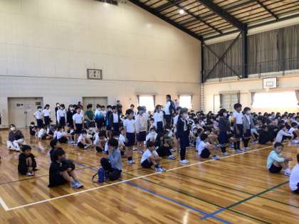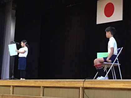前後期の切り替え式が行われました。4年生の代表の児童が、前期のふり返りと後期への決意の作文を読みました。後期の生活に向けて、全員がやる気に満ちています。