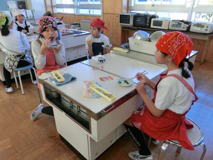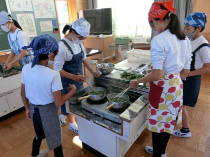 前回のお茶に続き、今回は茹で野菜の調理実習を行いました。上玉利先生の話をよく聞いて、お互いに協力しながら、どの班も上手にほうれん草を茹でることができました。自分たちで作ったほうれん草のおひたしは、どの子にとっても絶品だったみたいです。これからも調理実習は続いていきます。どんどんと料理の腕前をあげていってほしいです。