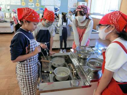 先日のお茶、ほうれん草に続いてじゃがいもの調理を行いました。ピーラーや包丁を使ってきれいに皮をむき、芽もしっかりとることができました。竹串で茹で具合を確認しながら完成したじゃがいもは塩コショウというシンプルな味付けでしたが、どの子もぺろりと平らげていました。やっぱり自分で作った料理の味は格別ですね。