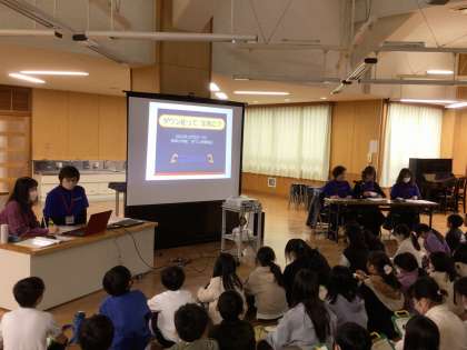 5年生は総合的な学習の時間の一環でやさしさいっぱい届け隊として活動していますが、今日は手話体験、ガイドヘルプ体験、ダウン症についてと3つの体験を行いました。お話にもあったように子どもたちには、障がいを特別視するのではなく、1つの個性としてとらえ、どんな人ともあたたかく接することができるようになってほしいです。今後は2月の学習発表会に向けてまとめの作業に入ります。2月を楽しみにしていてください!