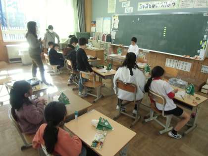授業の終わりには、代表児童が今日の感想を日本語で発表していました。クリスマスツリーはお家に持ち帰ります。オリジナルの作品をお家の人にも見てもらえるといいですね。