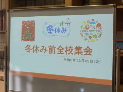 いよいよ明日から冬休みになります。家族で過ごす時間を大切にしながら、充実した冬休みを過ごし、1月9日に元気な子どもたちと再会できることを楽しみにしています。皆さん、よいお年を!