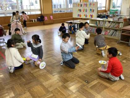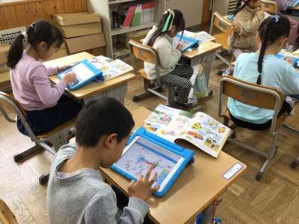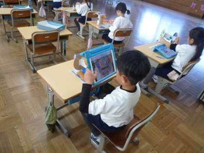 図画工作科で「かみざらコロコロ」という作品を作りました。個性あふれる、揺れる作品や転がる作品が完成しました。また、タブレットで設計図を描いたり、完成した作品の動きを動画に撮って記録したりするなどして、作品作り後の発表にも生かすことができました。