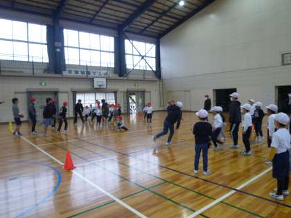 6年生との交流遊びでドッジボールを行いました。優しい6年生たちのおかげで、全員で楽しむことができました。6年生と過ごせる時間も残り3か月。卒業まで、なるべくたくさんの思い出を作っていきたいですね。