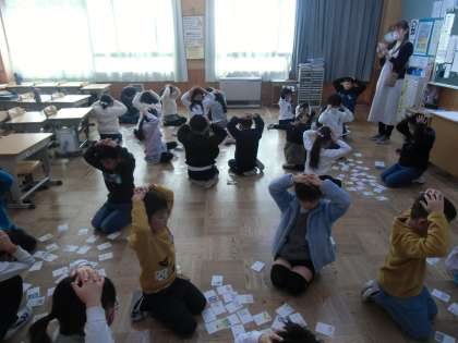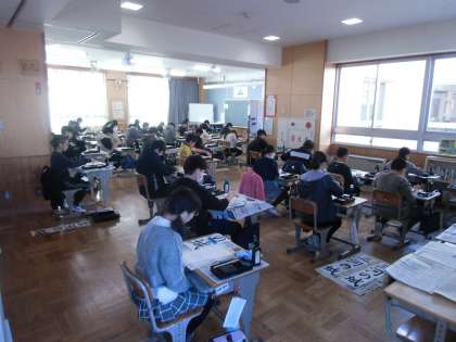 2・3校時には、各教室で書き初め大会を行いました。練習の成果を生かそうと、集中して取り組む姿が見られました。書き初め大会後には、カルタ大会で楽しむ笑顔がたくさん見られました。