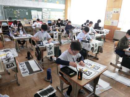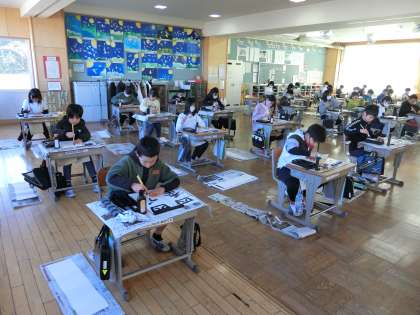 冬休みも明け、学校では新春恒例書き初め大会が開催されました。練習の成果を出そうとどの子も一文字一文字集中して取り組んでいました。