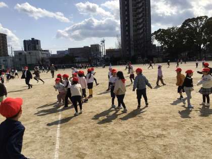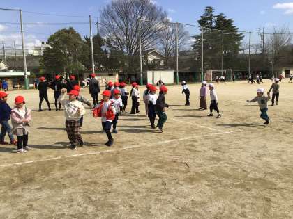 6年生主催の交流遊びで、どろけいを行いました。どの子も元気に運動場を走りまわり、6年生との交流を楽しみました。楽しかった反面、6年生と遊べなくなるのが寂しいという思いをもっている子もいます。卒業の日まで、6年生への感謝の気持ちを忘れずに過ごしていきたいです。