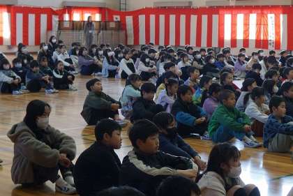 3月22日(金)、令和5年度の修了式を行いました。はじめに1〜5年生の代表児童に、修了証を手渡しました。校長の話として、卒業式式辞でも取り上げた「人間塞翁が馬」について、再度話題にしました。うまくいかない時でも、「悪いことばかり続くわけではない」、「今できることを着実にやっていこう」という気持ちで、自分の成長につなげてほしいと伝えました。