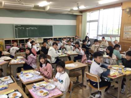 今日から給食が始まりました。今年からグループでの会食となり、初めは何を話せばいいのか戸惑っている子も多くいましたが、最後には笑顔で楽しく食事をしていました。食事のマナーやルールを守って、楽しい会食にしましょう。