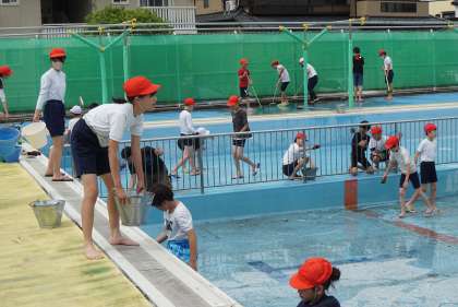 今年度もプールの季節がやってきました。挙母小学校のみんなが気持ちよくプール入れるように4・5・6年生でプール清掃を行いました。昨年のプール納めから手つかずの状態でしたが全員で協力して隅々まできれいにすることができました。もうすぐプール開きです。きれいなプールに入るのが楽しみですね。