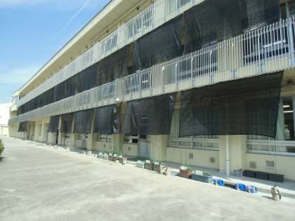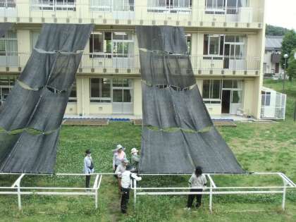 5月中旬を迎え、徐々に暑さが心配な季節が近づいてきました。今年度も、熱中症対策として、校舎の南側に遮光ネットを設置しました。5月20日(月)の午前中、挙っ子ボラの方にもお手伝いいただき、設置作業を行いました。子どもたちのためにご協力いただき、ありがとうございました。