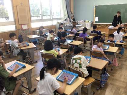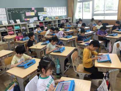 5月29日に、ICT支援員さんと一緒にスクラッチJr.を使ったプログラミング学習を行いました。子どもたちは簡単なプログラミングをお試しで組んだ後、自由にいろいろな動きを試していました。もっとやりたい、これも試してみたいなどの声もでており、楽しさのあふれる時間となりました。