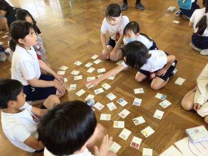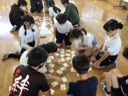 6年2組の低学年屋内レク会社が企画した『挙母っ子カルタトーナメント』に4年生が参加しました。1週間前から大会当日を楽しみに待つ4年生の子供たち。休み時間には挙母っ子カルタの特訓をする子もいました。6年生の上手なリードもあり、大いに盛り上がる大会となりました。今の6年生が1年生だった頃作られた『挙母っ子カルタ』。その魅力と楽しさを後輩に伝えたいという思いがあったのかもしれません。挙母小の1つのシンボルとして受け継いでいきたいものです。