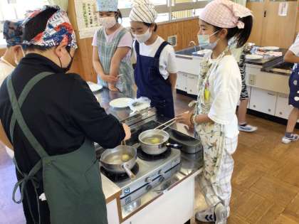 5年生 調理実習(ゆでいも)