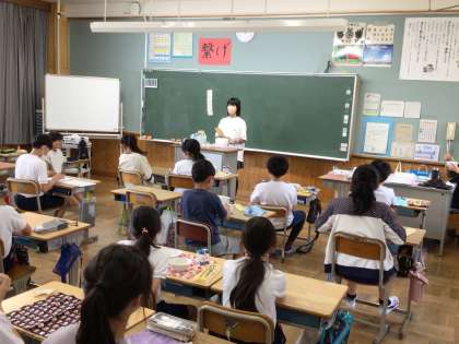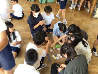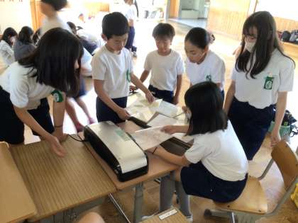 今日、5年生が教育キャンプに出発しました。6年生では5年生の教育キャンプが充実したものとなるように、お守りを作りました。天気はあいにくの雨ですが、スローガンのように楽しく正しい教育キャンプになることを学校から応援しています。