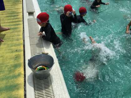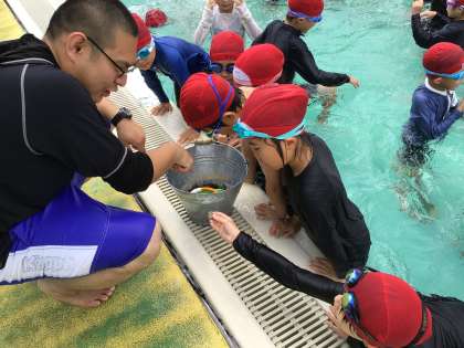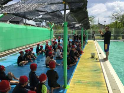 4日木曜日の2時間目にプール納めを行いました。2年生の水泳学習は、天気に恵まれ予定通り3チームに分かれて楽しく練習を行うことができました。プール納めではクラス対抗で碁石拾いを2回戦行いました。結果はI組の圧勝でしたが、みんなで楽しい時間を過ごすことができました。