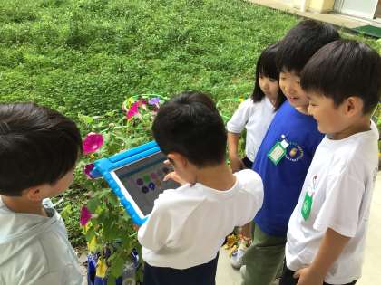 7月 アサガオの観察(1年生) 公開日 2024/07/17 更新日 2024/07/17 各学年から 一生懸命に水やりをして育ててきたアサガオ。花がたくさん咲いています。タブレットを使って咲いた花の数だけ色を塗り、毎日数えています。