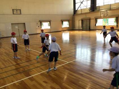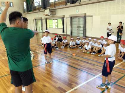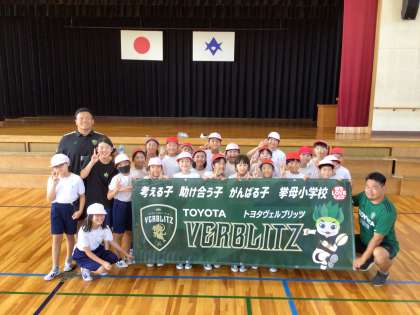 ラグビーチーム『トヨタヴェルブリッツ』の方たちにタグラグビーを教えてもらいました。初めての競技ですが、ルールを理解して楽しく活動できました。「またやりたい」と多くの子が言うので、授業でもやってみたいと思います。