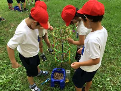 大切に育ててきたあさがおのつるを使い、リース作りをしました。支柱に絡まるつるを解きながら、「難しいな」と苦戦する子もいましたが、友達と協力し合って素敵なリースができました。
