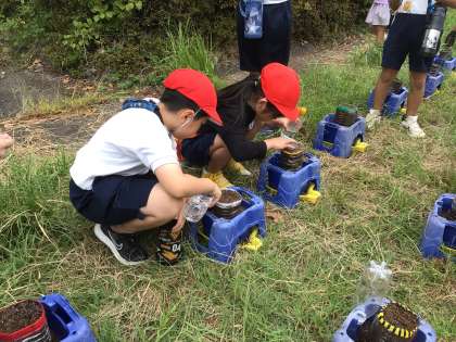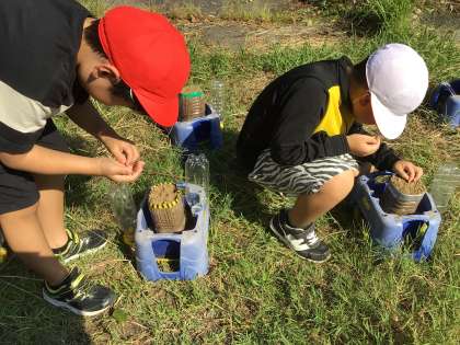 生活科「おいしくそだってね」の学習で大根の種まきを行いました。今回は冬野菜を種からプランターで栽培します。夏野菜の栽培の経験を生かしてお世話をしています。数日で元気な芽が出てきました。その後間引きを行いました。今後の成長が楽しみです。