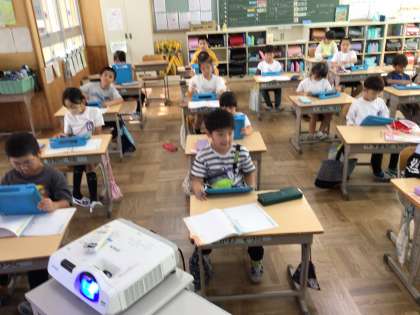 10月30日に、タブレットのポジショニング機能を利用した道徳の授業を行いました。子どもたちは不慣れな中、楽しそうに自分の考えをタブレットに入力していました。授業の面白さや深みを出すためのツールとして積極的に活用していきます。