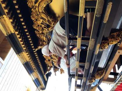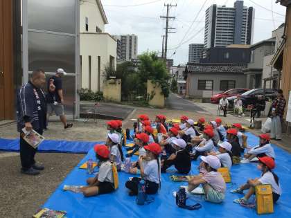 10月19日、20日に行われた挙母祭りの山車の見学に行きました。これまでお祭りで山車を見たことはあった子どもたちも、間近で見るのは初めてという子も多く、その迫力に圧倒されている様子が見られました。なんと見るだけでなく、山車を見せてくださった方々のご厚意で、山車の上に一人ひとり乗ることもできました。「そうぞうより高かった!」「猿がいるのを見つけたよ!」など、たくさんの感想を友達と話すなど、子どもたちにとって、とても貴重な体験となったようでした。