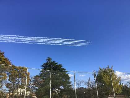 今日から始まるWRC最終戦ラリージャパンのオープニングイベントとしてブルーインパルスの航空ショーを運動場で観覧しました。一糸乱れない動きや迫力のあるエンジン音に歓声をあげながらみている子も多かったです。明日からの3連休、ラリージャパンの観戦をするのもいいかもしれません。