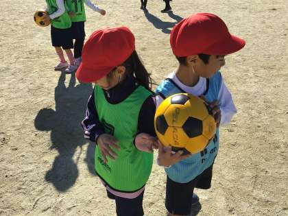 11月21日(木)に、名古屋グランパスからコーチを招いて、ボール蹴りゲームのご指導をしていただきました。専門家の指導ということもあり、子どもたちも興奮気味に練習に取り組んでいました。これからボール蹴りゲームを行うクラスもあり、興味を高めるよい機会となりました。
