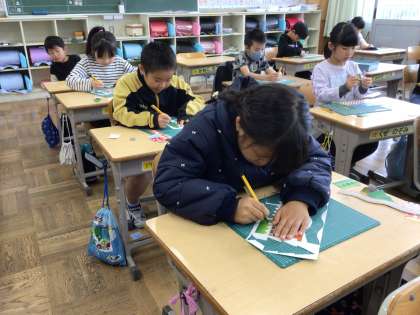 11月20日 図工『まどからこんにちは』2年生