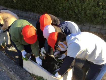 9月に続き、フラワーロードの植え替えを行いました。今年度最後の植え替えということもあり、気合が入った様子でした。今回は、パンジー、シロタエギク、ノースポールの3種類の苗を植えました。これから花が咲いていくのが楽しみです。