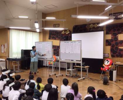 人権移動教室がありました。忍たま乱太郎のビデオを観て、登場人物の行いの良いところを話し合ったり、言葉にはちくちく言葉とふわふわ言葉があることを学んだりしました。