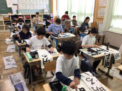 新年最初の登校日に、校内書き初め大会が行われました。冬休みに練習した成果を発揮すべく、どの子も真剣に取り組んでいました。新たなる年のスタートにふさわしい生き生きとした字を書くことができました。
