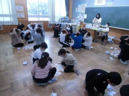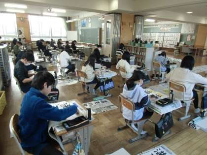 2・3校時には、各教室で書き初め大会を行いました。冬休み中に練習したことを意識しながら、集中して取り組む姿が多く見られました。書き初め大会後には、カルタ大会で楽しむ笑顔がたくさん見られました。