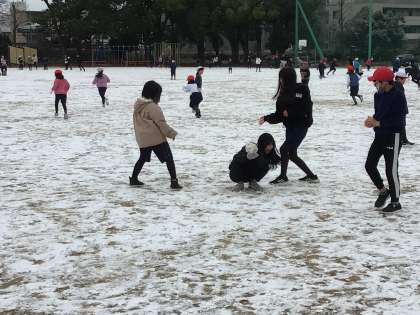 朝起きたら、一面銀世界になっていました。学校のグラウンドに降り積もった雪を見て、6年生もテンションが上がり、サンサンタイムに雪遊びをして楽しんでいました。今日は暖かくして寝てください。