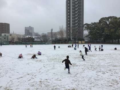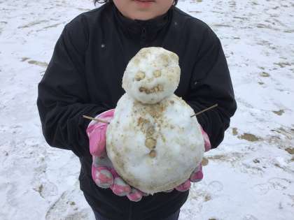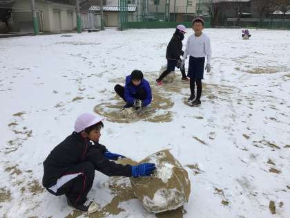 久しぶりに挙母小学校に雪が積もりました。4年生は、2時間目に外で遊びました。雪合戦をしたり、雪だるまを作ったりと楽しそうに遊ぶ姿が見られました。