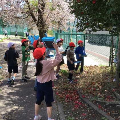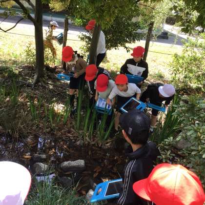 理科の学習で、ビオトープでの自然観察を行いました。桜やたんぽぽ、モンシロチョウやアゲハチョウなど、春の季節にふさわしい動植物をたくさんみつけることができました。国語の教科書に出てきたスイセンの花を見た子供たちは、「本当にラッパみたいな形をしている!」と歓声をあげていました。