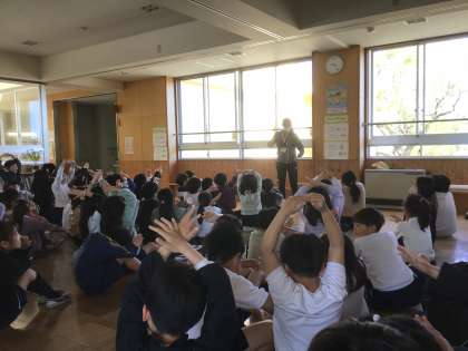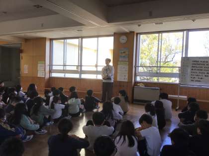9日に学年集会を行いました。担任の好きなものや得意なことなどの自己紹介とまどみちおさんの詩を紹介して、今年1年期待をもって頑張ろうという意欲をもちました。