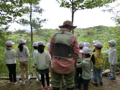 隊長の話を聞きながら、木の枝ジャンケンをしたり、水の中の生き物を探したりして、春の森を満喫しました。