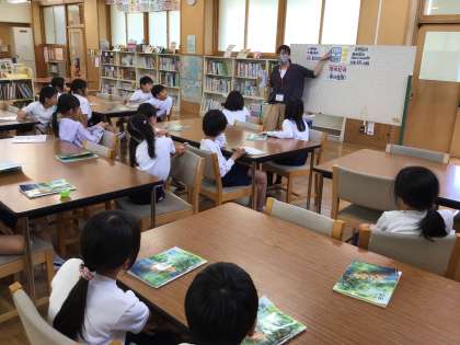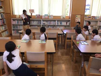 図書館で司書の滝澤先生から、おすすめの本や、本の見つけ方のコツについて教えてもらいました。本の背についた分類記号を手がかりとして、お目当ての本を素早く見つけられるようになりました。今年もたくさんの本が借りられるとよいです。