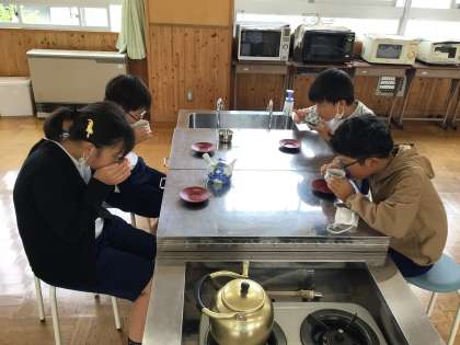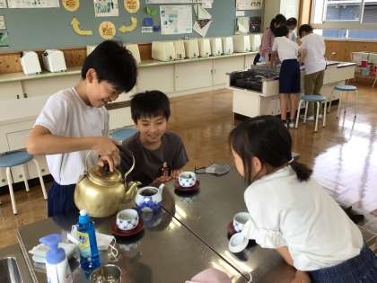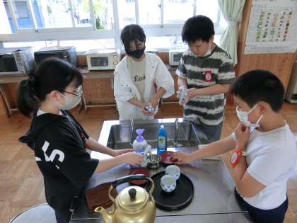 「おいしい」ととびきりの笑顔でお茶を飲む子、「やっぱりちょっと苦手だな」と飲む子、さまざまでしたが、日本の伝統を味わいました。
